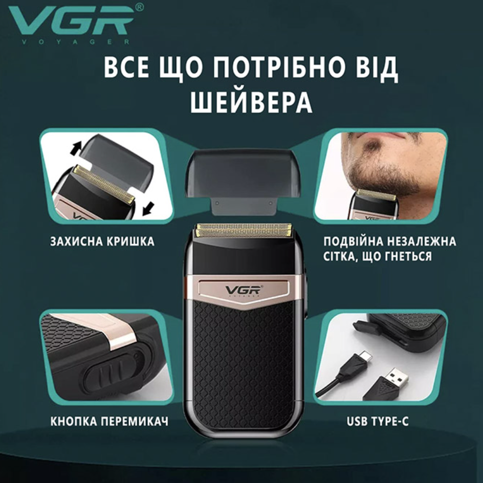 🪒Електробритва VGR — стиль, комфорт і бездоганний результат Електробритва VGR — це поєднання сучасного дизайну, ергономіки та високої ефективності. Вона створена для тих, хто цінує акуратність, комфорт і впевненість у собі щодня.